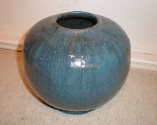 16cm high, dia. 20cm. Reginald Wells 1877-1951. Rare early Coldrum vase by Reginald Wells - considered the father of British studio potters, coming a generation before Bernard Leach. There were potteries at Wrotham in Kent, as early as the seventeenth century. In 1900, Reginald Wells, at the age of twenty-three set up his pottery at nearby Coldrum. He had previously studied as a sculptor at the Royal College of Art, and as a potter at Camberwell School of Art in London. After nine years he moved Coldrum Pottery to Chelsea, and continued there until the outbreak of the First World War. Wells, who had an interest in flying from an early age, devoted the war years to his Wells Aviation Company, working from the same premises. After the war he moved to the Kings Road, renaming the company the London Pottery Company, and changing the mark from COLDRUM to SOON. In 1925 he moved to Storrington in Sussex, retaining the SOON ware brand, and continued there until his death in 1951. -