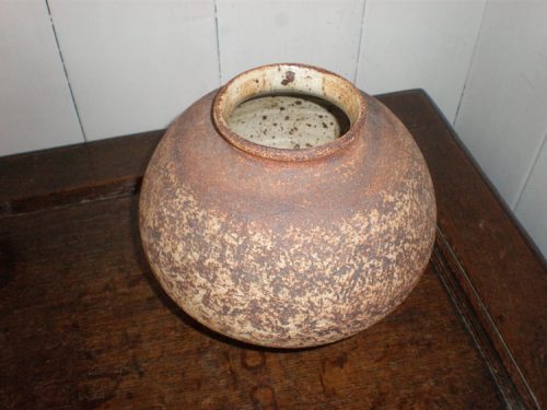 19cm high, dia. 24cm. Waistel Cooper 1921 - 2003 Textured Vase. Wood Ash Glaze. Waistel Cooper, a Scot born in 1921, set up his pottery at Porlock in Somerset in 1952. He specialised in textured surfaces and was also known to use wood ask glazes occasionally. From 1983 he operated from Barbican Pottery in Penzance, Cornwall. He signed his work with his forename in black, but I have seen a pot with just a 'W'. He died in 2003.