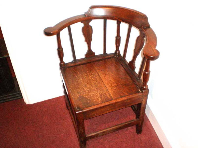 An exceptional and rare mid-Georgian corner chair of excellent quality with a number of individual features and constructed unusually in yew wood.