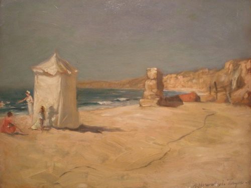 A stunning example of ‘Staithes School’ painting, painted before the formation of the Newlyn School in Cornwall. This type of subject matter has become very rare, painted at a time when this type of subject matter was in the main romanticised in the typical manner.